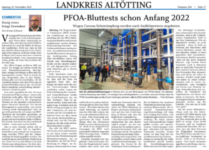 • Leserbrief zum PNP-Bericht „PFOA-Werte erschreckend hoch“ vom 16.01.2026
