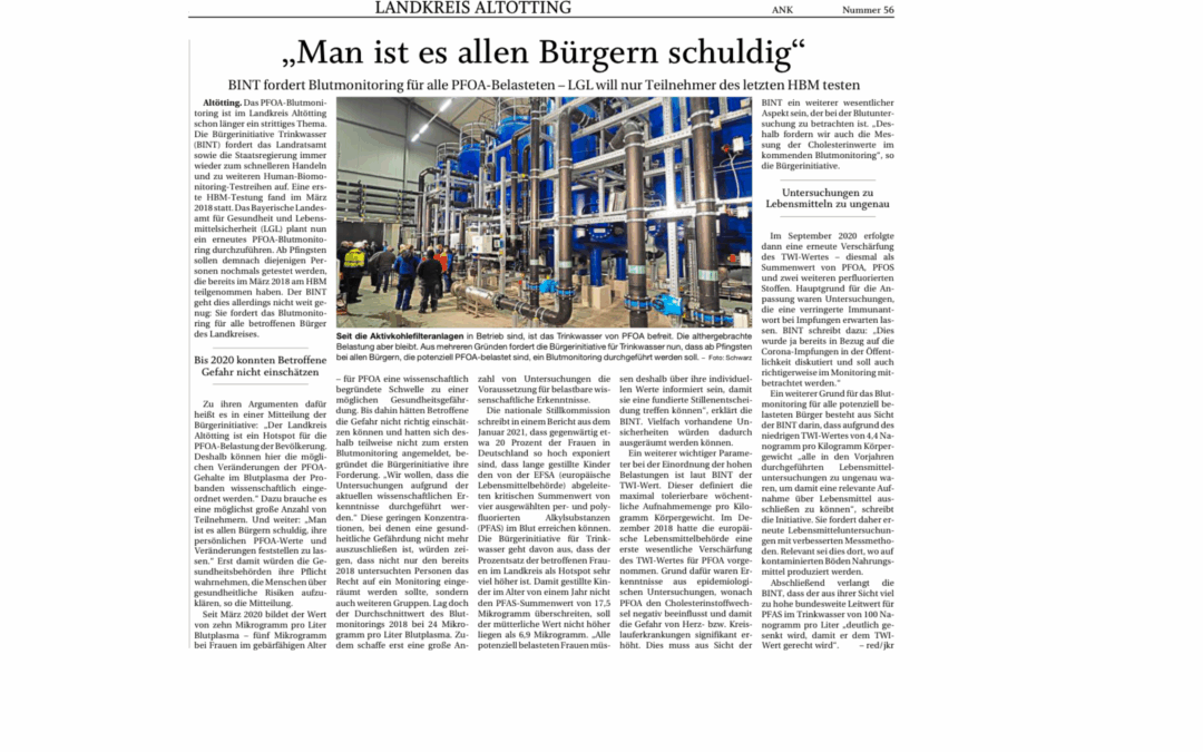Leserbrief zum PNP-Bericht „PFOA-Werte erschreckend hoch“ vom 16.01.2026